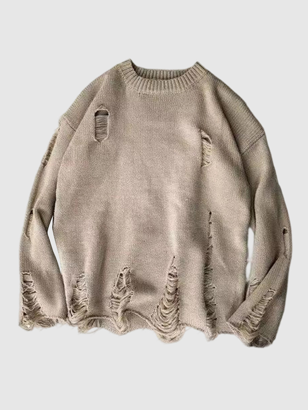 Men's solid color loose fit knitted crew neck sweater